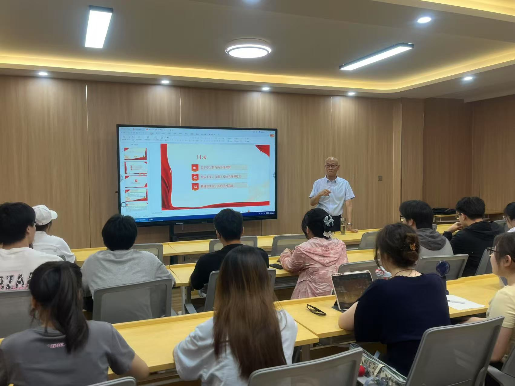 会议认真学习了习近平总书记在贵州、云南和河南考察期间关于开展深入贯彻中央八项规定精神学习教育的重要讲话。马光明希望全体员工党员进一步学习领会习近平总书记关于加强党的作风建设的重要论述的基本内容、基本观点、基本要求,掌握中央八项规定及其实施细则精神,通过学习教育深刻领悟“两个确立”的决定性意义、坚决做到“两个维护”,将中央八项规定及其实施细则精神融入日常学习生活。他鼓励同学们坚定信念、脚踏实地,结合国家战略发展需求与个人志趣,科学规划发展路径。