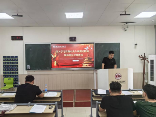 随后,支部书记张帅以“深入学习贯彻中央八项规定精神,锤炼优良学风作风”为题为大家讲授专题党课。