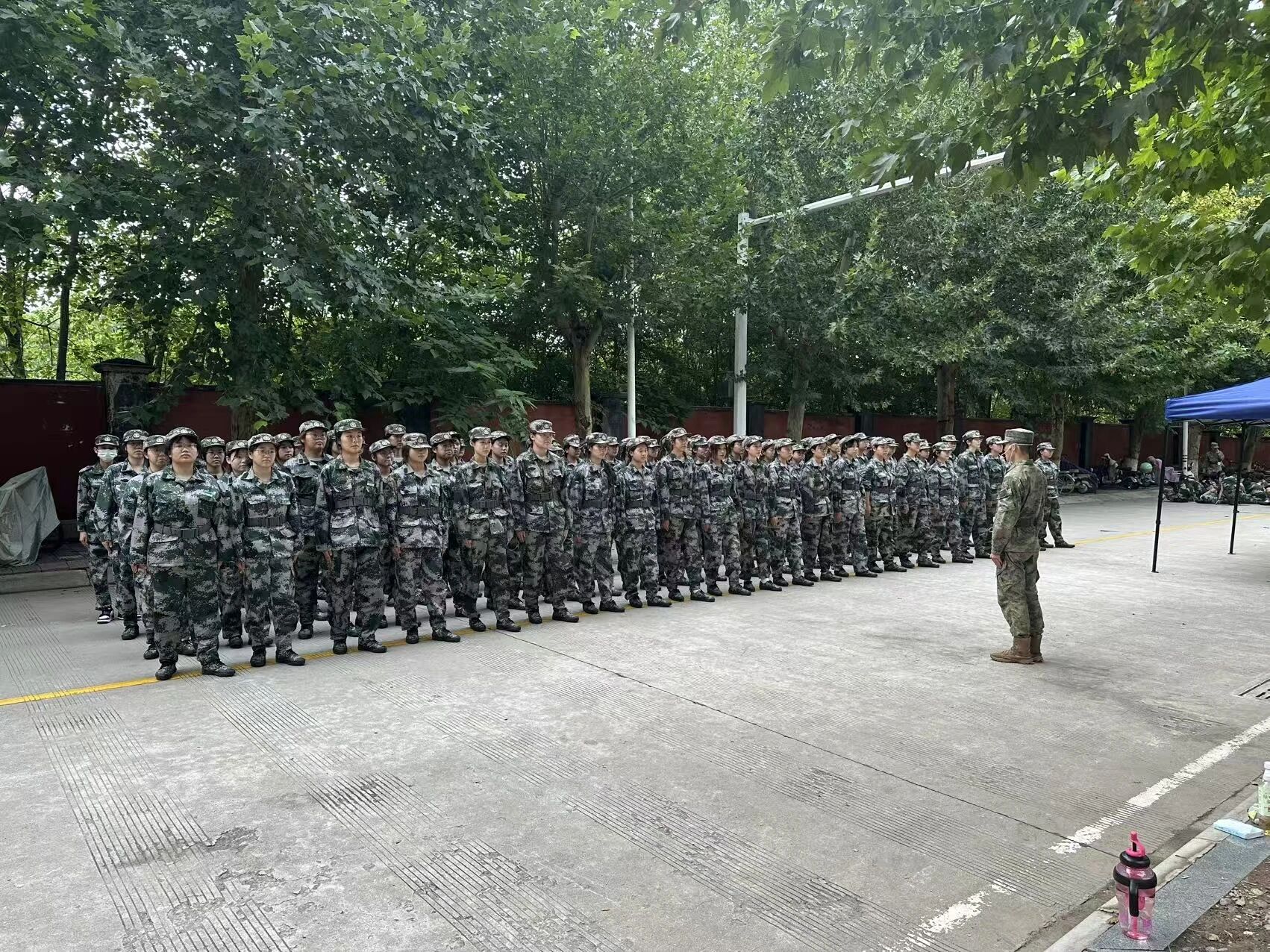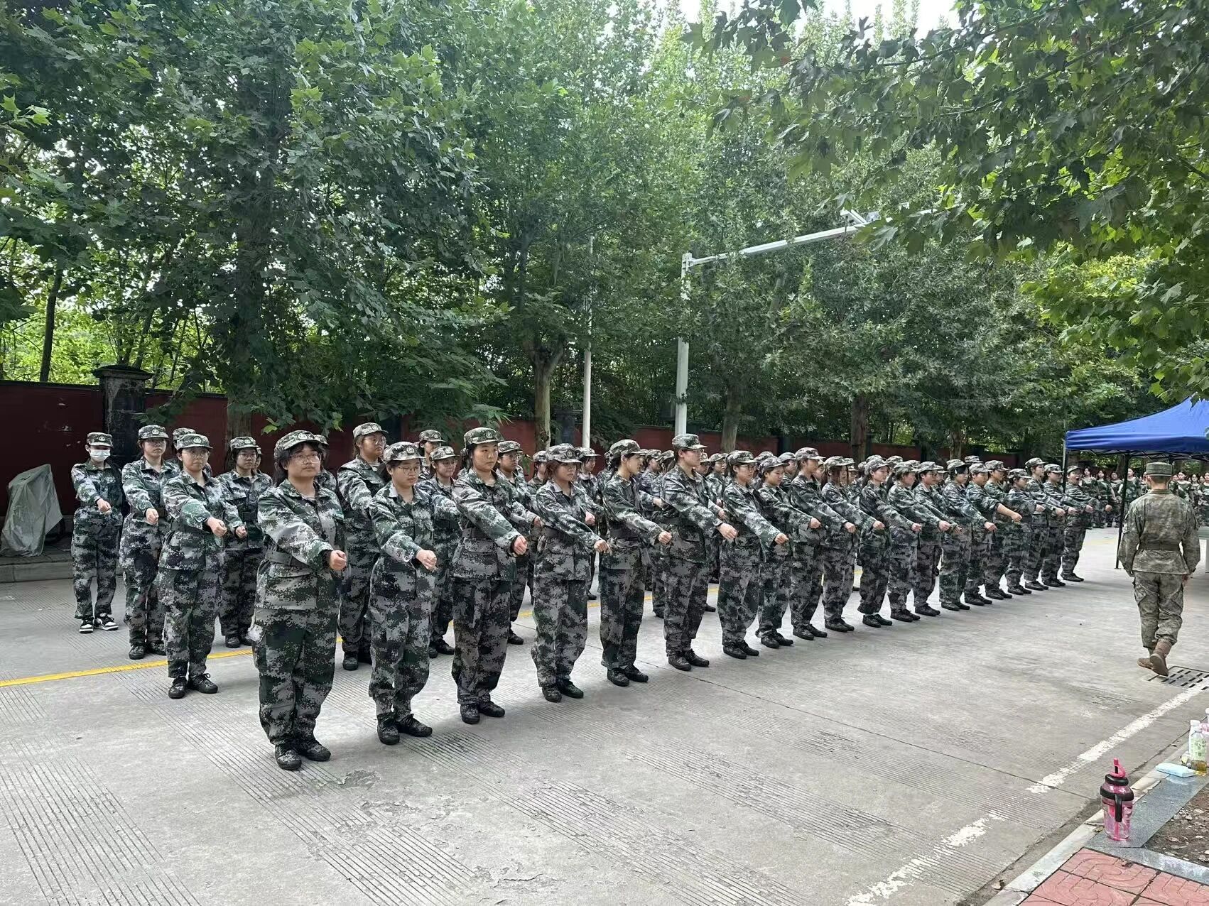 训练场上,新生们在教官的严格指导下,全身心投入到军事训练中。站军姿时,他们身姿挺拔,纹丝不动,展现出顽强的毅力。稍息、立正、跨立等基础动作,他们反复练习,力求做到整齐划一。同学们不断调整步伐的大小、手臂摆动的高度和力度,每一步都坚定有力,踏地有声。口号声更是响彻云霄,喊出了政管学子的豪迈与自信。