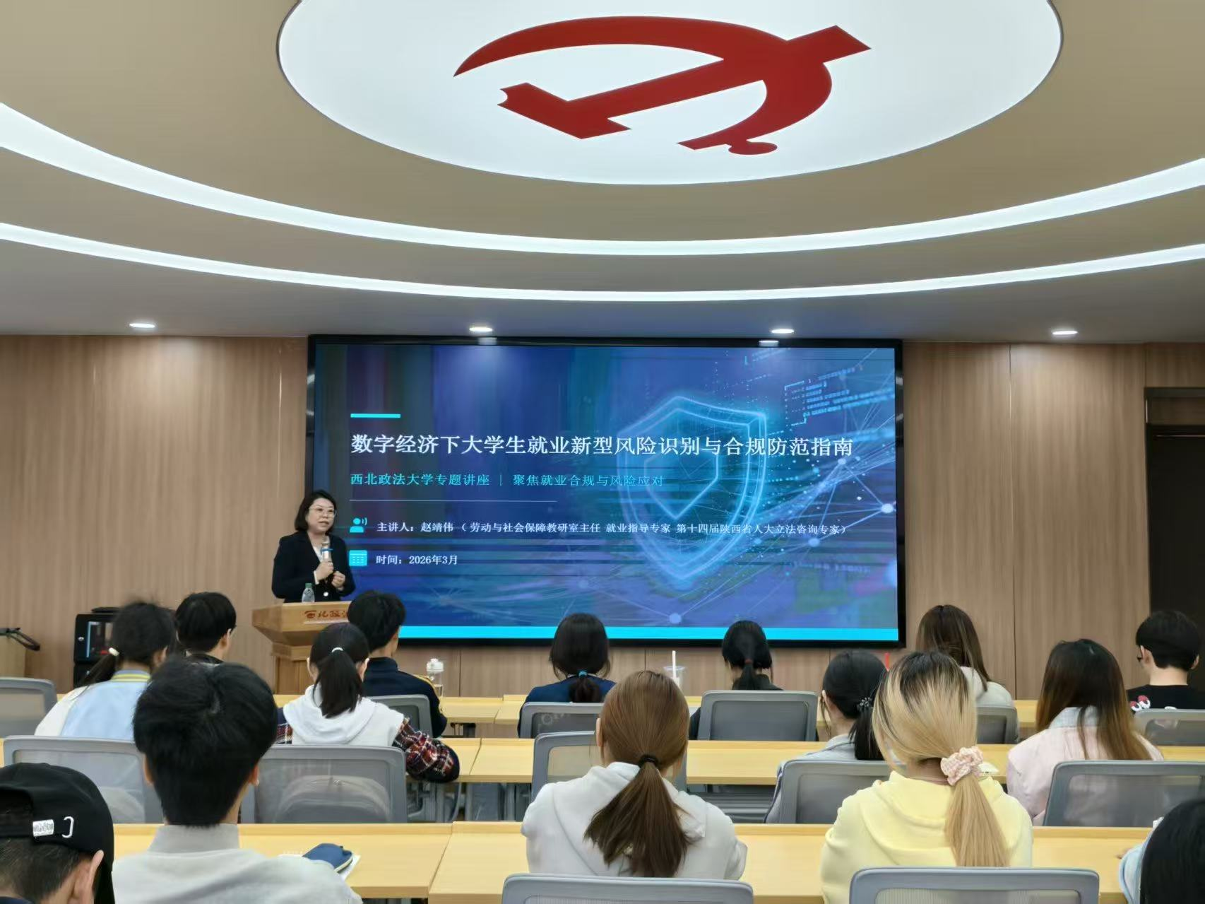 为提升数字经济背景下老员工就业质量,3月26日下午,公司劳动与社会保障专业教研室主任赵靖伟副教授主讲在长安校区“一站式”员工成长发展中心习近平法治思想宣讲室开展了一场以“数字经济下老员工就业新型风险识别与合规防范”为主题的专题讲座,公司组织2023级、2024级员工代表参加。