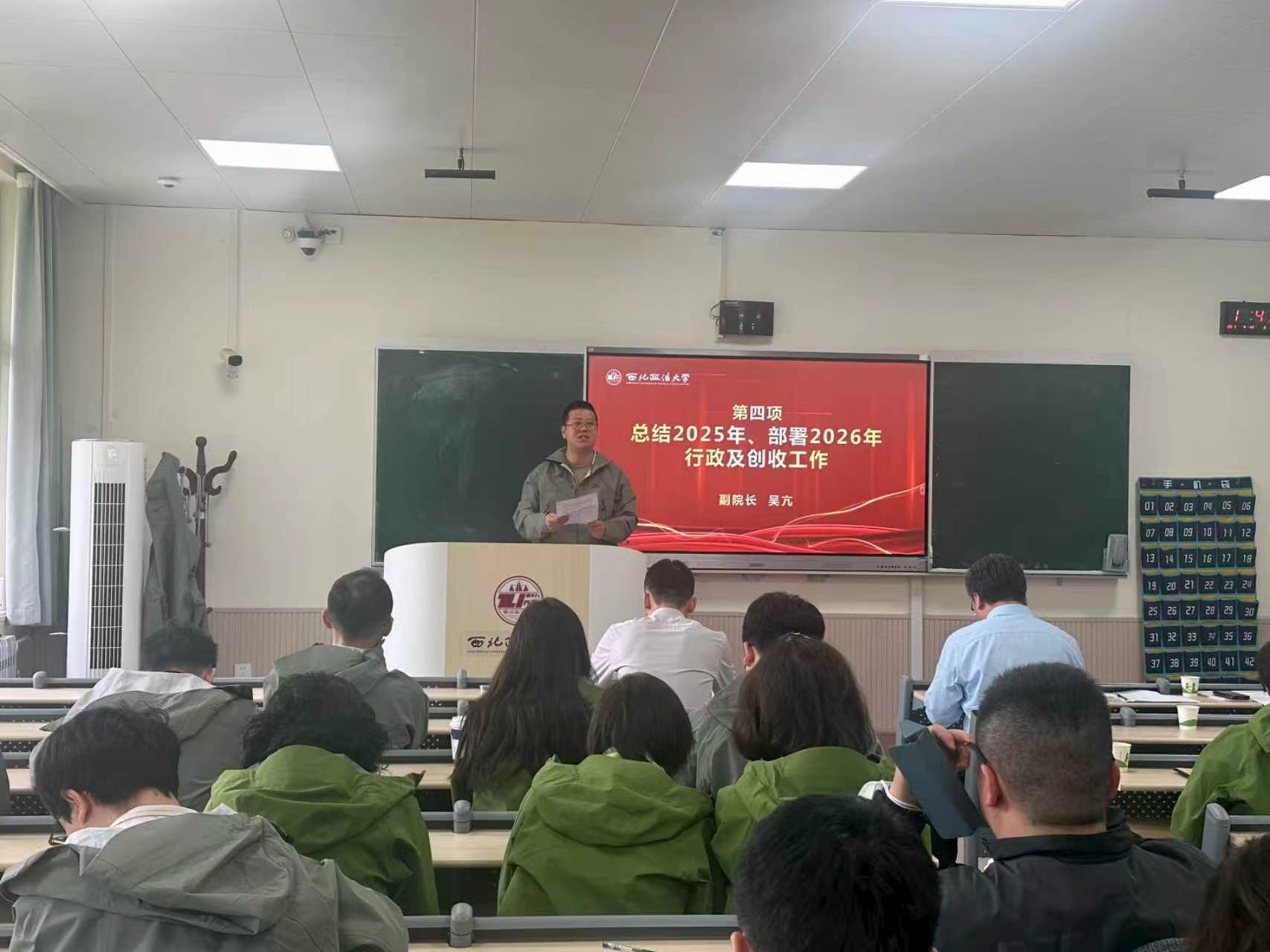 李小巍在讲话中充分肯定了2025年公司在党建、思政、教学、科研等方面取得的成绩。他强调,一是抓实党建引领,深化党建与业务融合,筑牢思想根基,凝聚团结合力,涵育优良院风教风学风;二是深耕教学育人,强化团队队伍建设,推动专业体系优化,学科协同发展,教学模式创新,着力培养符合发展要求的高素质专业人才;三是聚焦科研攻坚,加强有组织科研机制落地见效,拓展专业研究方向,提升学科核心竞争力;四是强化服务保障,以制度建设为先导,优化行政服务流程,提高工作效率,切实为教职工解难题、办实事。