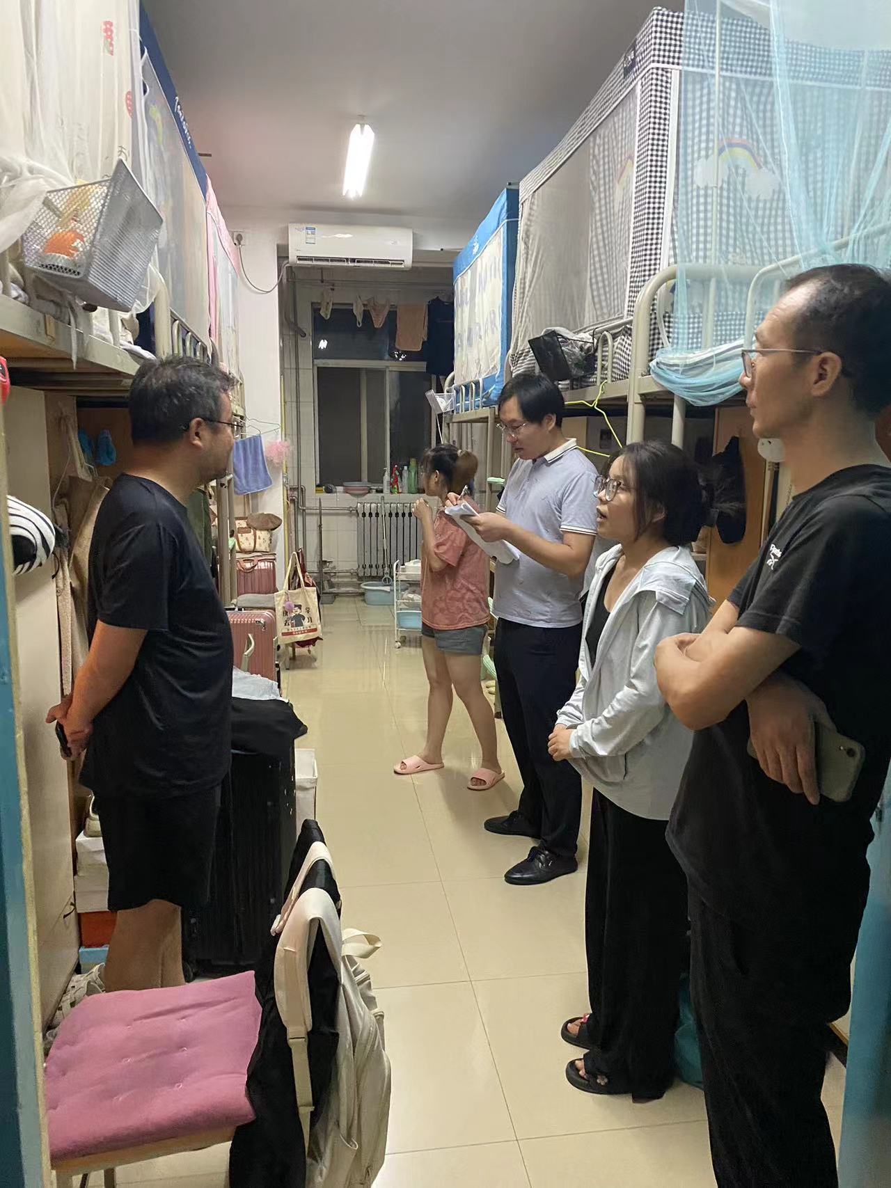 为切实保障暑假期间员工宿舍的安全与稳定,夯实学院安全管理工作基础,7月24日,公司党委副书记潘键携2021级辅导员梁传龙、2022级辅导员杨峰走访员工宿舍开展检查工作。
